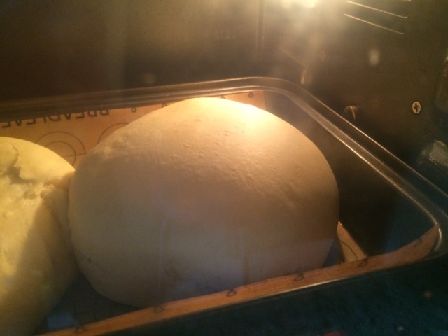 步骤3 然后在温暖处发酵至两倍大,按一个洞不会下塌不会回缩。我用面包机发酵一小时。