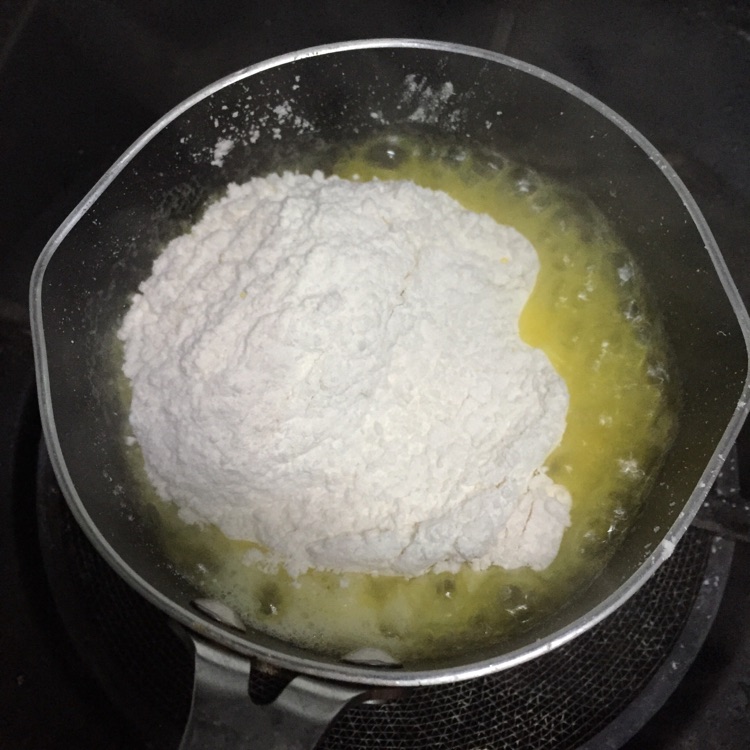 步骤3 筛入过筛的面粉关火拌匀至无颗粒